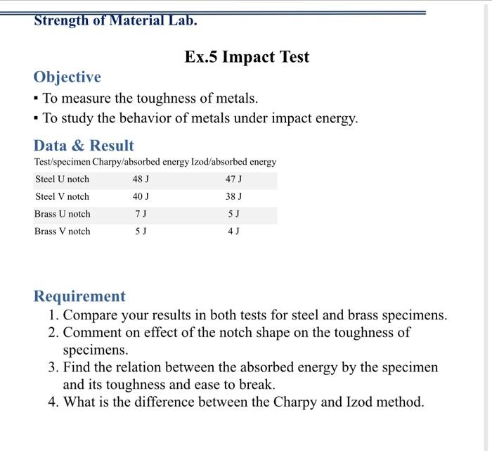 Solved Strength Of Material Lab Ex 5 Impact Test Objective Chegg Com